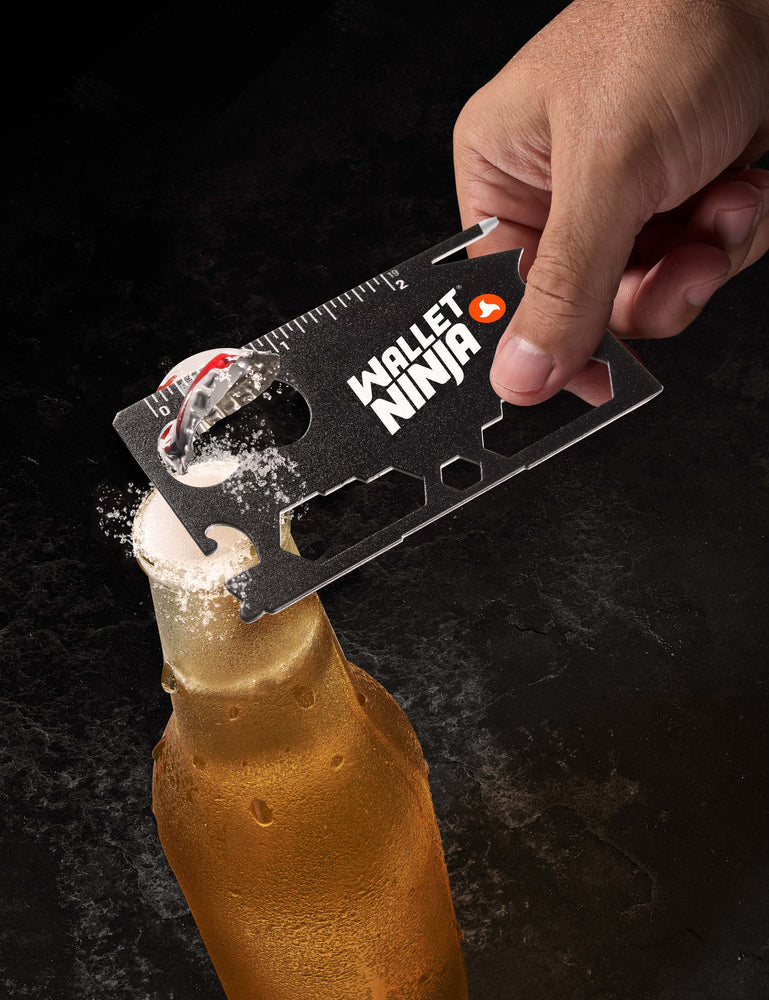 The Wallet Ninja puts an end to not having access to your tools when you actually need them. We created the innovative Wallet Ninja to give you access to 19 different tools such as a bottle opener, screwdriver, can opener, ruler and many more all in the size of a standard credit card so it fits perfectly in any wallet. It's lightweight and compact, making it easy to carry around wherever you go and perfect for everyday use.