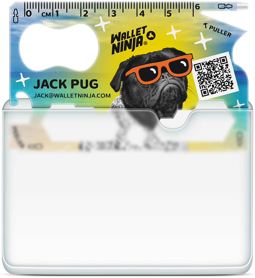 The Wallet Ninja is credit card sized & fits right in your wallet: 3.37”x 2.125”